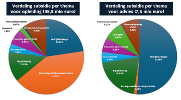 De populariteit van deze thema’s toont aan dat ondernemers enerzijds investeren in de versterking van de werkvloer en anderzijds in hun strategie in een snel veranderend economisch landschap. Opvallend is echter dat duurzaamheid – nochtans een speerpunt van het Vlaams beleid en cruciaal voor toekomstgericht ondernemen – slechts een beperkte rol speelt binnen zowel opleidingen als adviestrajecten. Zo ging slechts 3,68% van de subsidies voor opleidingen en 4,63% van die voor adviezen naar dit thema.