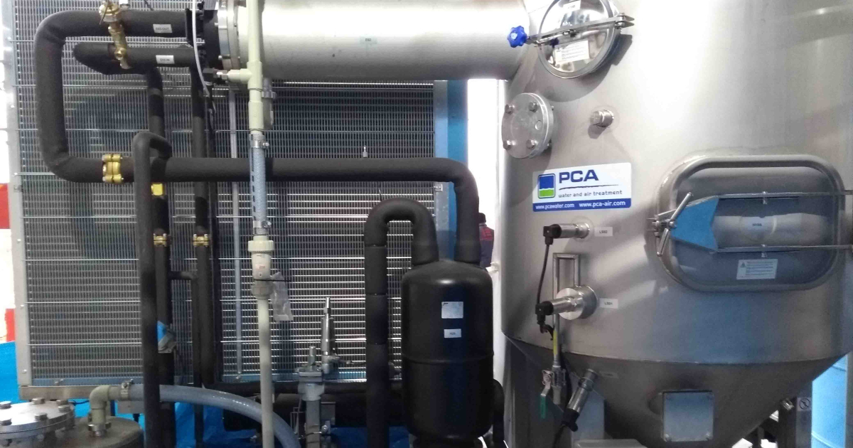 “Een vacuümverdamper is een systeem waarbij het afvalwater in een gesloten circuit verdampt. De vloeistof die daaruit gehaald wordt – het distillaat – is erg zuiver water dat gewoon opnieuw gebruikt kan worden. Het concentraat bevat de vervuiling uit het afvalwater. Dat voeren we af.”
